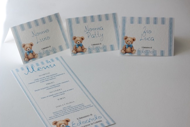 A febbraio ha creato da zero il tema per le bustine nascita… il risultato? Erano meravigliose!!!! Oggi sono tornata per le bustine e segna posti per il loro battesimo, nuovamente tutto perfetto.