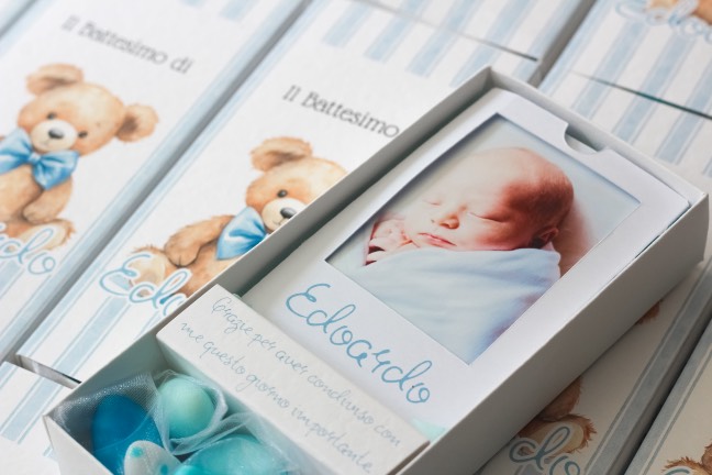 Mi sono rivolta a Giulia perché mio marito ed io avevamo piacere di dare alle nostre famiglie e ai nostri amici un piccolo presente per la nascita della nostra bimba. Giulia è stata fantastica nell’assecondare i nostri desideri e nel proporci più alternative per ottenere il risultato che volevamo (in realtà è andata ben oltre la nostra immaginazione), nonostante non sapessimo il sesso del mio inquilino di pancia! Quando ha avuto il minimo problema con le bustine a cui avevamo pensato, le ha tramutate in scatoline per assicurarci la massima resa del prodotto (: