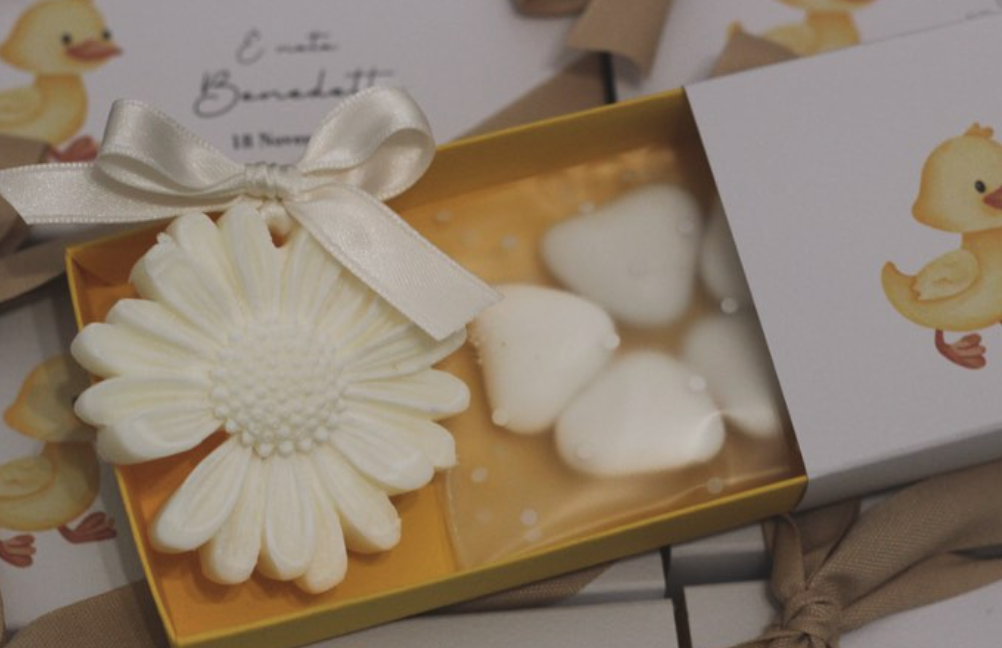 Mi sono rivolta a Giulia perché mio marito ed io avevamo piacere di dare alle nostre famiglie e ai nostri amici un piccolo presente per la nascita della nostra bimba. Giulia è stata fantastica nell’assecondare i nostri desideri e nel proporci più alternative per ottenere il risultato che volevamo (in realtà è andata ben oltre la nostra immaginazione), nonostante non sapessimo il sesso del mio inquilino di pancia! Quando ha avuto il minimo problema con le bustine a cui avevamo pensato, le ha tramutate in scatoline per assicurarci la massima resa del prodotto (: